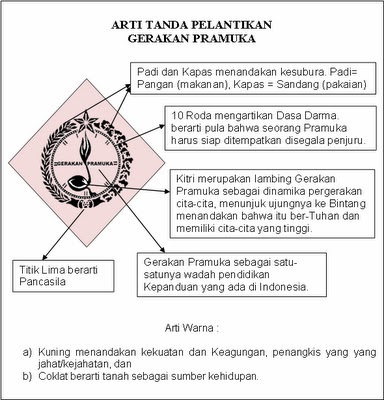 Jadi lambang ini memiliki arti, tekad serta keyakinan setiap pramuka yang berdasar pada landasan serta beberapa dasar yang baik, benar, kuat dan nyata dua bintang melambangkan anggota pandu atau pramuka yang berusaha agar bisa memberi penerangan dalam menolong serta ilmu pengetahuan.