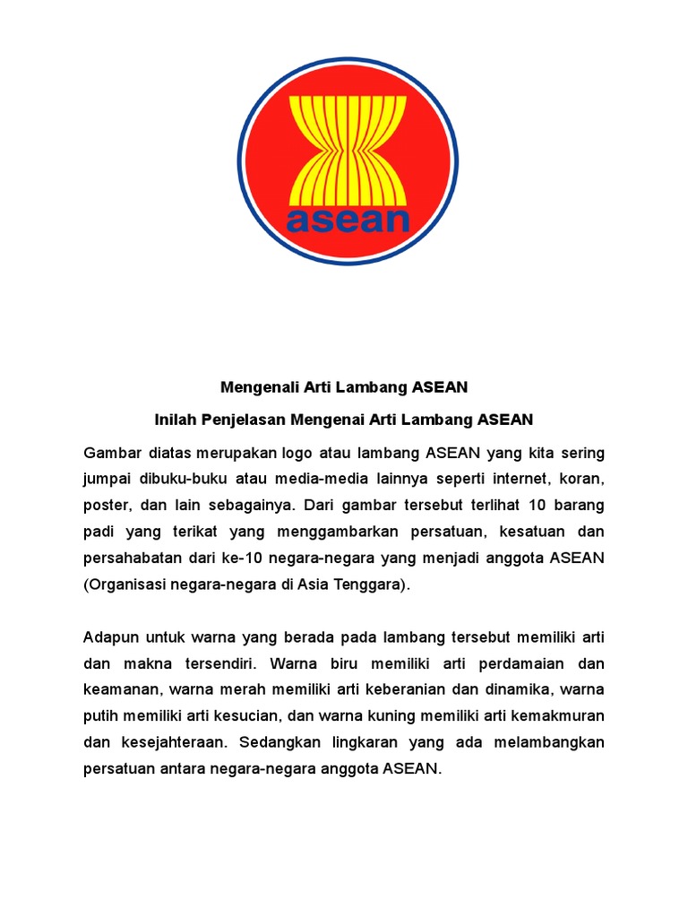 Lambang dari asean sendiri memiliki arti khusus yang patut kita ketahui. Dalam artikel ini, kami akan meringkas secara ringkas. Bentuk dari lambang padi tersebut juga terhimpun terletak di tengah lingkaran merah. Di tengah perisai burung garuda terdapat simbol bintang yang memiliki lima sudut.