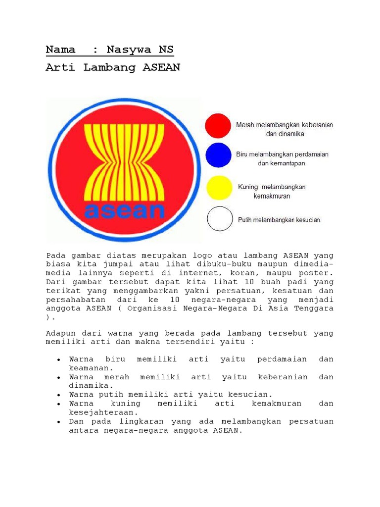 Cokelat, melambangkan kekuatan dan stabilitas. Lingkaran merah ini dibatasi dengan. Asean diciptakan dengan 5 menteri luar negeri arti lambang asean. Sedangkan lingkaran itu sendiri melambangkan persatuan antara negara dari anggota asean.